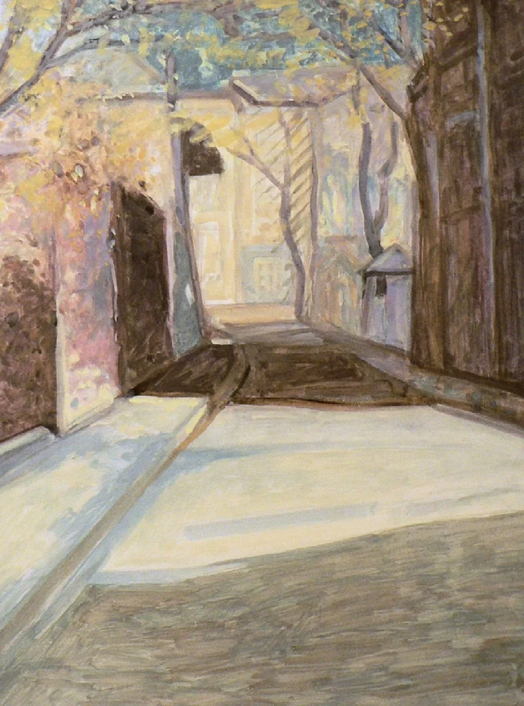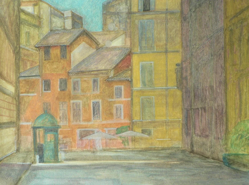 Her paintings evoke the imago loci — not the literal streets, but the emotional resonance of the city’s soul.”